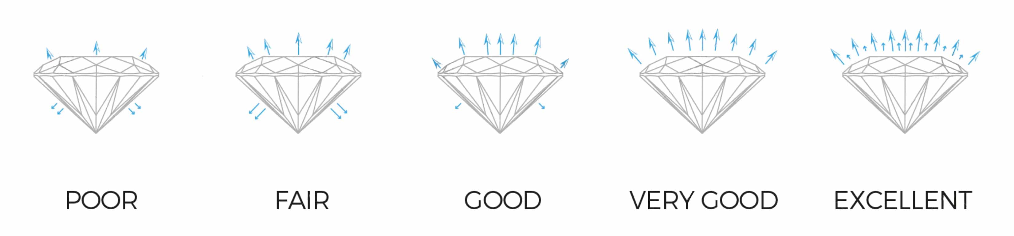 Pero dado que es el corte de facetas y no el tamaño lo que determina el brillo, centelleo, fuego, y por lo tanto, belleza del diamante para anillos de compromiso, se suele clasificar el grado de corte bajo las etiquetas de: