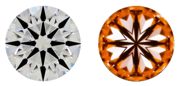 Visto desde la parte superior del diamante, si es que este tiene un buen corte, podrás ver un patrón de “flechas y corazones”. Esto significa que el diamante tiene una simetría óptica perfecta.