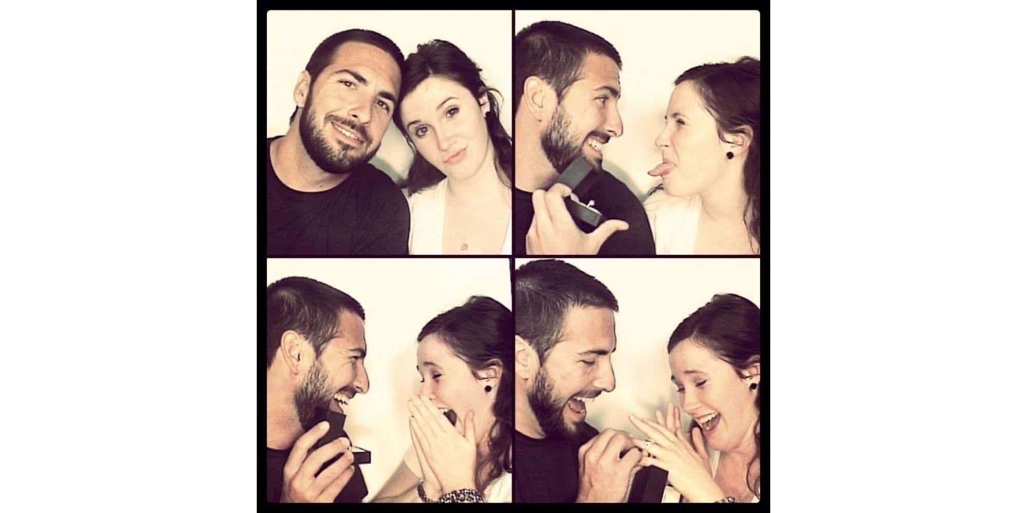 Cuando las fotos empiezan, saca el anillo de compromiso y sorpréndela. No hay manera en que pueda esconder su reacción de sorpresa y tendrás todo el momento capturado en las fotos que tomó la cabina.